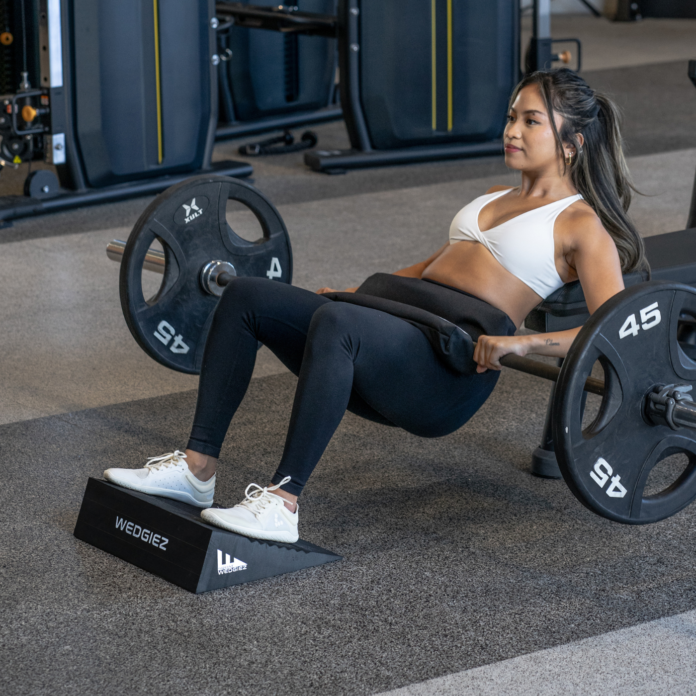 Whereas the second one will use squat wedges, slant boards, dumbbells and barbells.